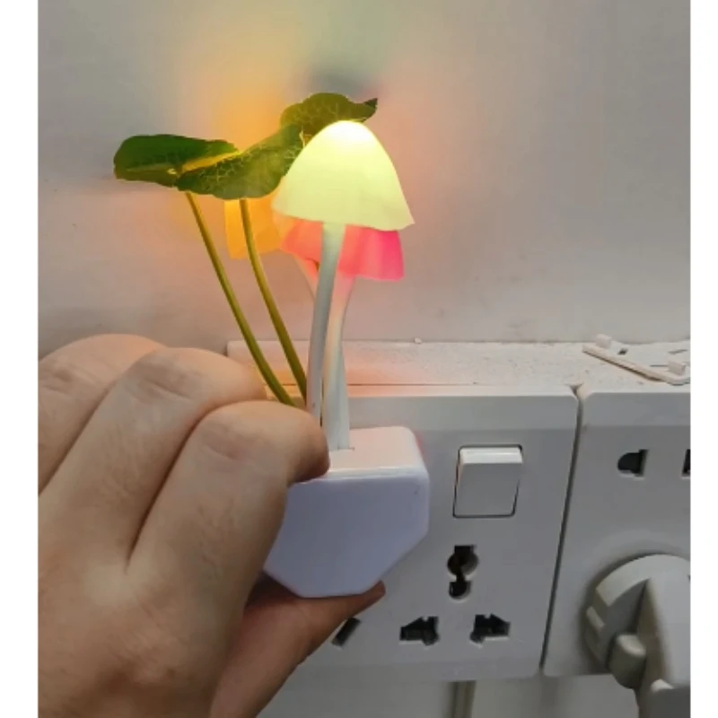 Add whimsy and color to any room with this novelty mushroom night light. Equipped with 3 colorful LED lights, it creates a soothing and playful ambiance. The built-in light sensor automatically turns the lamp on in the dark and off during the day. Compatible with both EU and US plugs, it works in multiple regions. Ideal for bedrooms, kids’ rooms, or as a decorative night lamp. The 220V power supply ensures reliable and stable lighting. Lightweight and compact, it fits easily on bedside tables or shelves. Its fun mushroom design adds a charming touch to home décor. Perfect for gifting to children or anyone who loves creative lighting. Enjoy a blend of functionality, fun, and aesthetic appeal with this colorful LED mushroom lamp.